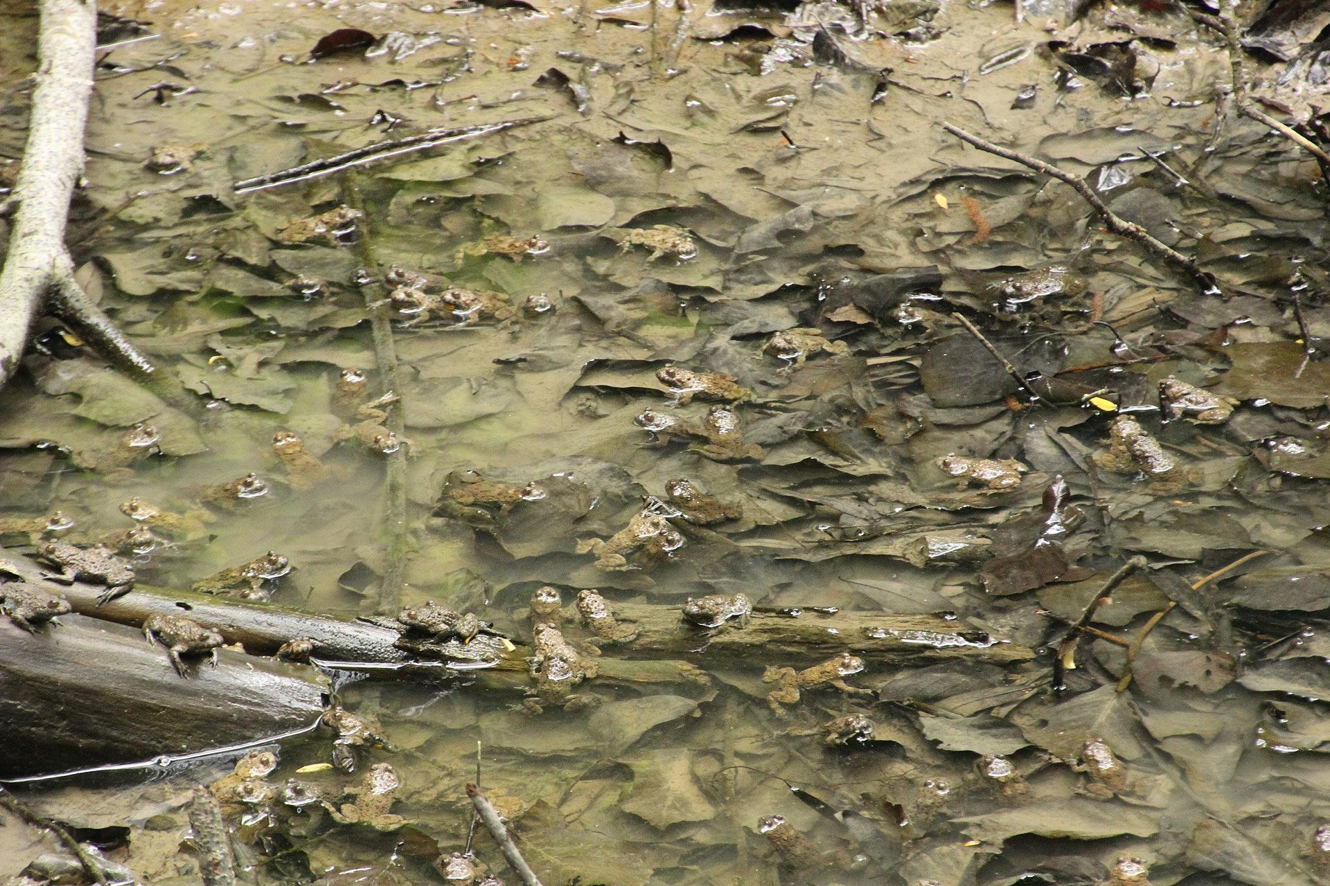 Das Getümmel in der kleinen Pfütze am Wegrand sind nicht etwa Kröten, sondern Gelbbauchunken. Dies wird deutlich, wenn man einen Blick auf ihre Unterseite erhaschen kann: Hier trägt sie ein Muster aus leuchtend gelben und schwarzen Flecken. Doch bitte stören Sie die Tiere nicht, sie sind streng geschützt. Einen Blick auf das Warnmuster können Sie im folgenden Abschnitt zur Gelbbauchunke werfen.